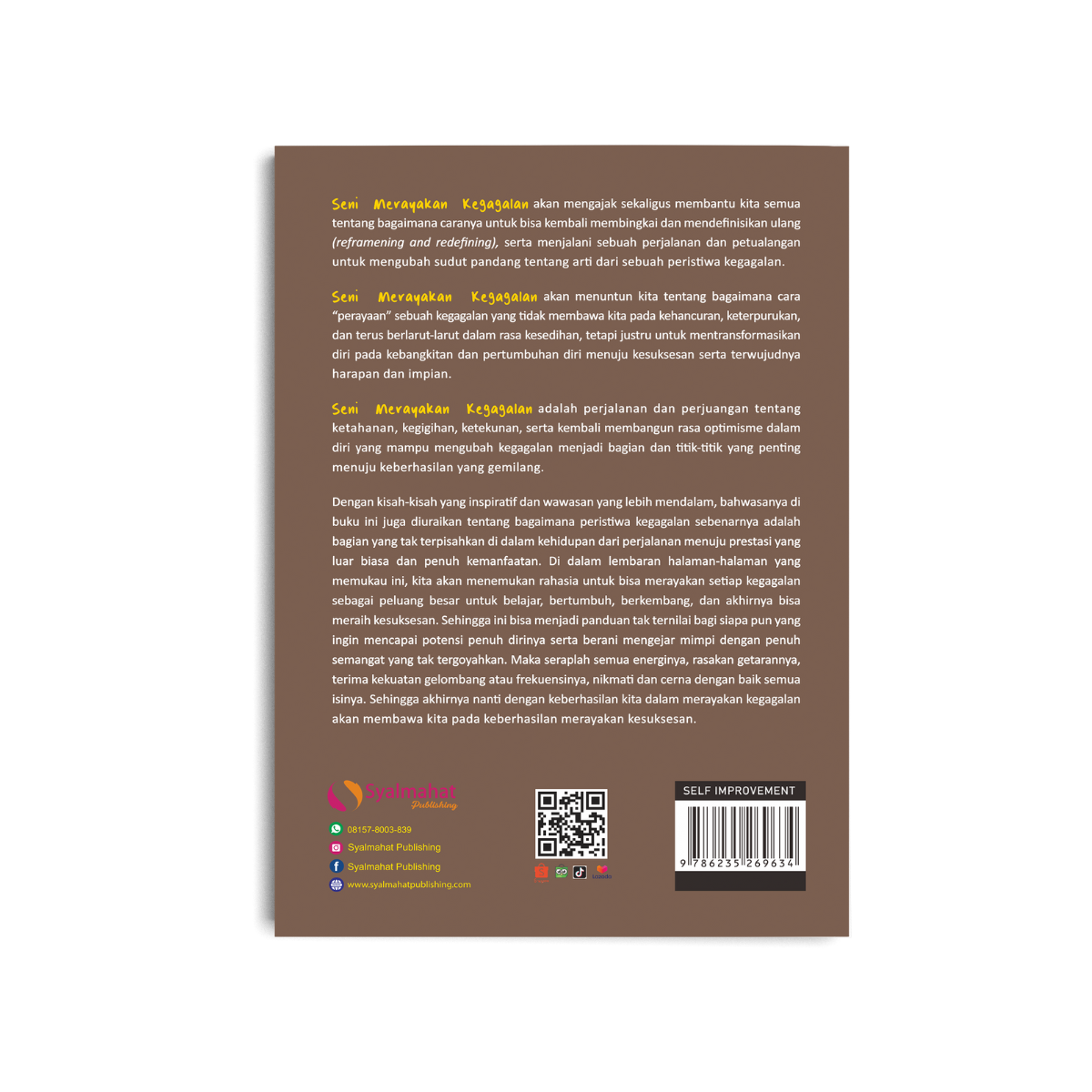 Buku Seni Merayakan Kegagalan merupakan seri kedua dari buku dwilogi “Untukmu Para Pejuang Impian”. Buku ini akan mengajak kita untuk membingkai, mendefinisikan ulang serta menjalani sebuah perjalanan dan petualangan untuk mengubah sudut pandang tentang arti dari sebuah peristiwa kegagalan sebagai peluang besar untuk belajar serta berkembang dan akhirnya bisa meraih kesuksesan.